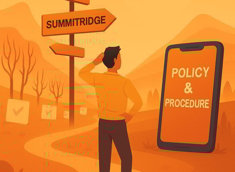 Disclaimer: SummitRidge is an independent organization and is not affiliated with the Centers for Medicare & Medicaid Services (CMS), any federal or state government agency, or any accrediting organization. All content and services provided are for informational and support purposes only and do not represent official government or accreditor endorsement. Compliance programs vary by package. Please review your selected package for included compliance levels.